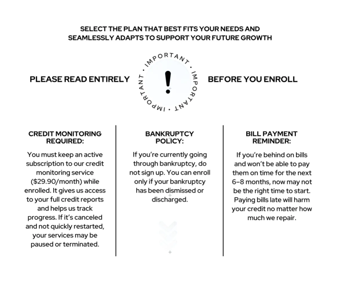Please Note: To get started, you’ll need to upload your government-issued ID, SSN, proof of address, and contact information. This is required by the credit bureaus to process disputes. If you’re not comfortable providing this, do not sign up — there are absolutely NO refunds.